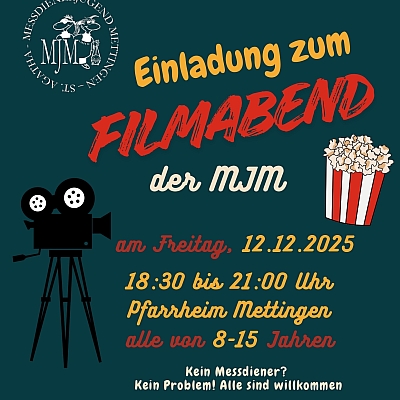 HALLO, hast du Lust auf einen Filmabend am Freitag, 12. Dezember im Pfarrheim Mettingen? Eingeladen sind Kinder und Jugendliche im Alter von 8 – 15 Jahren. Kein Messdiener? Keine Messdienerin? Kein Problem! Alle sind willkommen. Anmeldung per QR-Code oder per Link bis zum 7. Dezember.