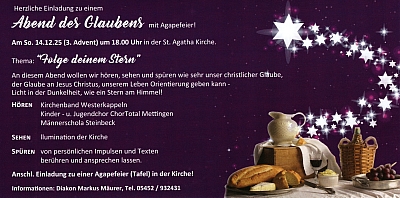 Herzliche Einladung zu einem Abend des Glaubens mit Agapefeier am