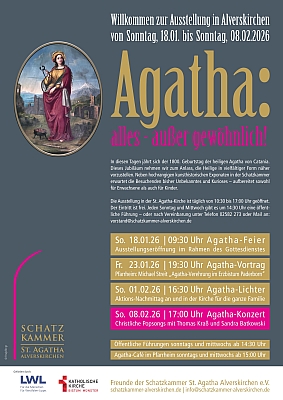 Der Verein „Freunde der Schatzkammer St. Agatha Alverskirchen e.V.“ lädt ein zu einer besonderen Ausstellung anlässlich des 1800. Geburtstages der Heiligen Agatha von Catania unter dem Motto: