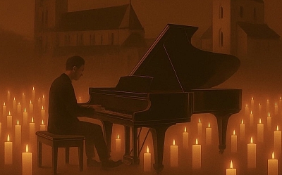Die Initiative zu diesem Abend entstand durch das Engagement von Jessi Lübke, die das Projekt zur Wiederbeleuchtung der beiden Mettinger Kirchtürme begleitet und nach Wegen suchte, Kultur, Gemeinsinn und einen wohltuenden Gedanken von Ruhe und Frieden miteinander zu verbinden. Die Musik wird von Melanie und Filip Peoski gestaltet, einem Pianistenehepaar, das mit Kerzenschein-Konzerten bereits viele Menschen berührt hat.