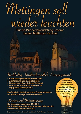 Damit Mettingen bald wieder im warmen Licht erstrahlt, brauchen wir Ihre Unterstützung! Ihre Spende hilft, Mettingen wieder leuchten zu lassen!
