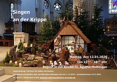 Der Nachmittag beginnt an der Krippe in der Pfarrkirche St. Agatha Mettingen, wo gemeinsam vertraute Weihnachtslieder gesungen werden.