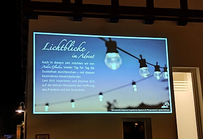 Wie in den vergangenen beiden Jahren werden vom 1. Advent bis zum 24. Dezember jeden Tag wieder Impulsfragen an die Außenfassade des Pfarrheims in Mettingen projiziert.