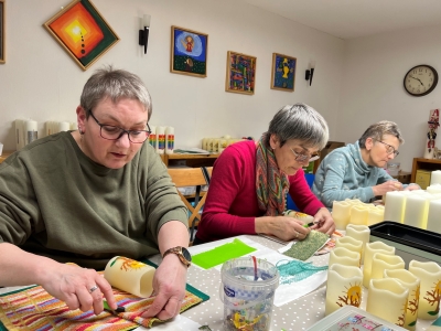 Das Licht der handverzierten Kerzen soll den Menschen Freude und Zuversicht spenden. Zum 17. Mal gestaltete das Mettinger Kerzenteam diese ganz besonderen Hoffnungsbringer. In sieben verschiedenen Größen haben die Männer, Frauen und Kinder in den vergangenen Monaten die Stumpen und LED-Kerzen mit flüssigem Wachs, Wachsplatten, Schlucksteinen und Wachsstreifen gestaltet.