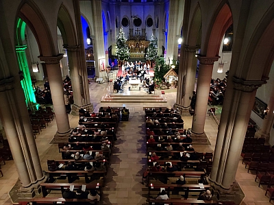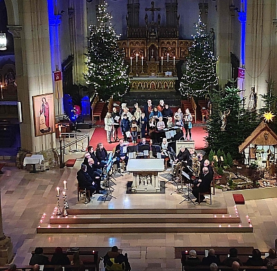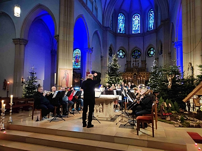 Auch das Klavier- und Orgelspiel von Artur Jurczyk trug dazu bei, dass noch einmal eine festliche Weihnachtsstimmung aufkam. Auf Wunsch der Gemeinde ließ es sich der Posaunenchor nicht nehmen, als Zugabe die erste Strophe von „Tochter Zion“ erklingen zu lassen.