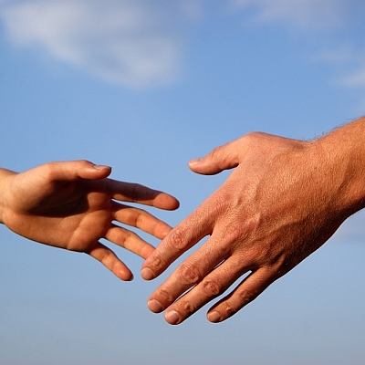 Wärme teilend und Hände haltend.