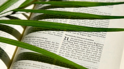 Palmzweig über einer aufgeschlagenen Bibel © Erzbistum Köln/Munns