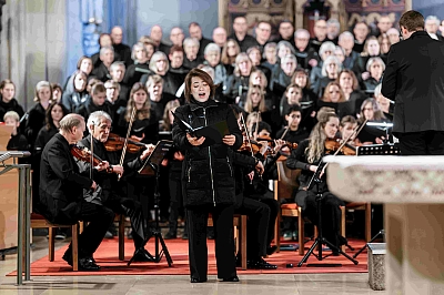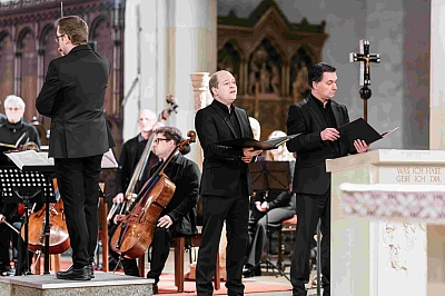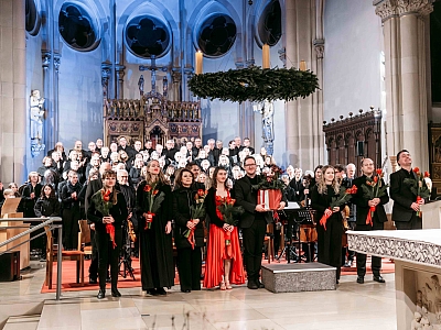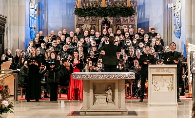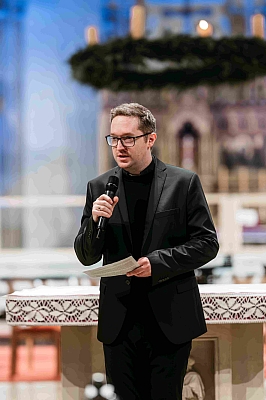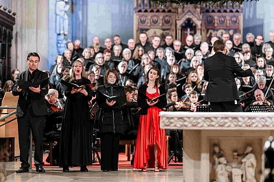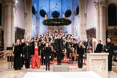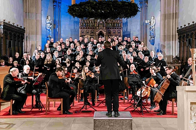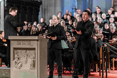 Die vereinigten Chöre verharrten derweil diszipliniert und ruhig im Bereich des Hochaltares, ehe sie immer wieder mit abschließenden Versen punktgenau einsetzten, dabei präzise dirigiert von Artur Jurczyk. Hier war ein homogener und ermüdungsfreier, mächtiger Klangkörper am Werk, und das bis hin zum abschließenden Weihnachtschoral „Tollite Hostias“, hier dargeboten in der strahlenden Tonart G-Dur.