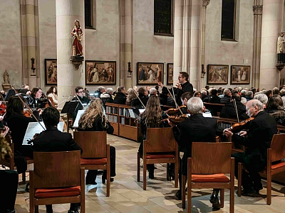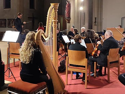 Vielmehr haben die Streicher unten am Turm am Taufbecken Position bezogen - das war in St. Agatha wohl noch nie der Fall.