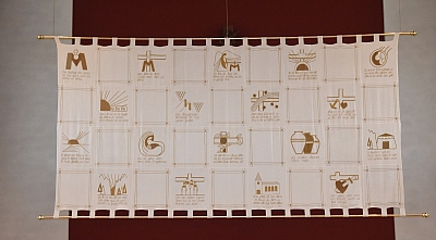 Jedes Jahr in der Fastenzeit hängt in unserer Pfarrkirche St. Agatha ein besonderes Kunstwerk: das Hungertuch.